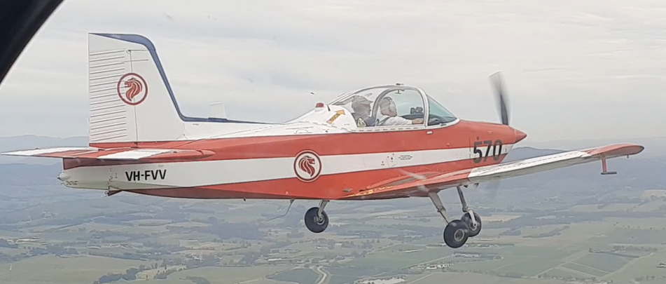The echelon position is achieved by flying slightly below the Lead, stepped back, at a distance between fuselages of approximately 1½ wingspans (Echelon Right Position).